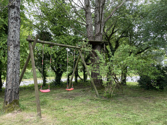 Les petits (et les plus grands !) pourront profiter de tout l'espace extérieur du site et des jeux : marelle, balançoire, cabane, molki, terrain de badminton/volley ...